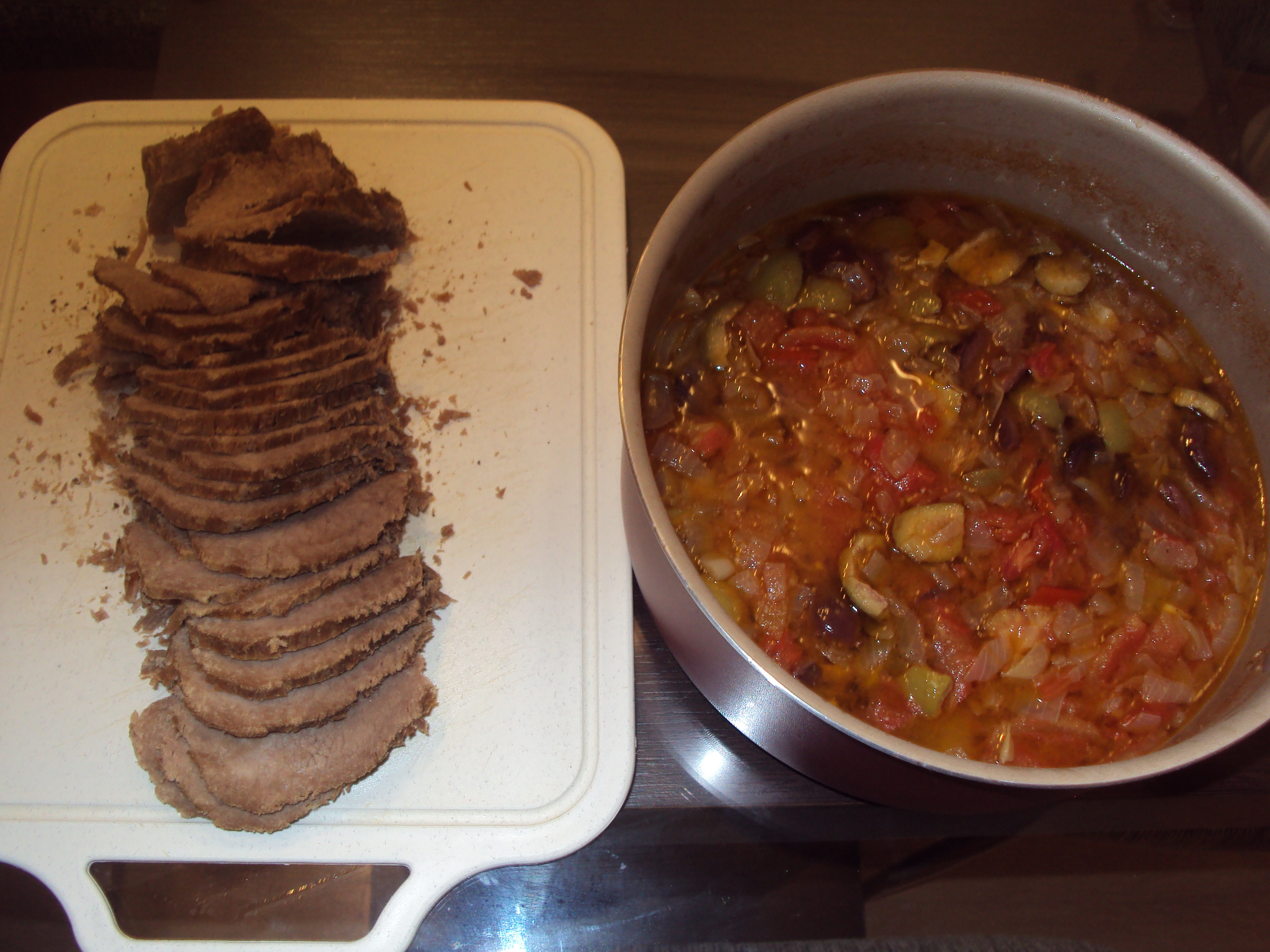 Retire, deixe esfriar bem e corte em fatias finas (eu tenho uma faca elétrica que é ótima para essas ocasiões).