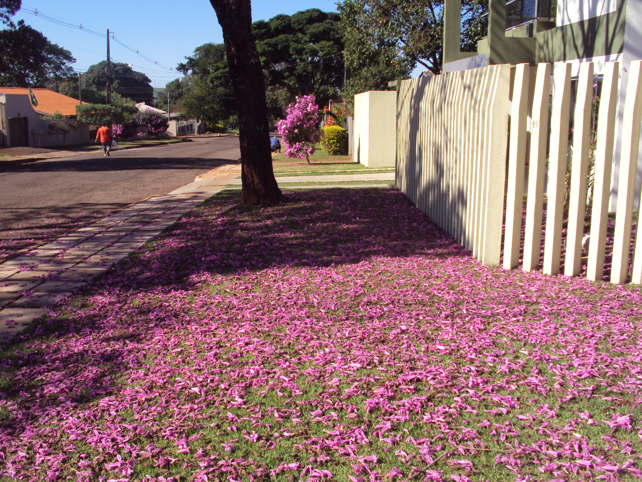 Até a natureza estava em festa: essas fotos são das árvores e calçada (da rua onde eles moram em Campo Mourão) completamente floridas!