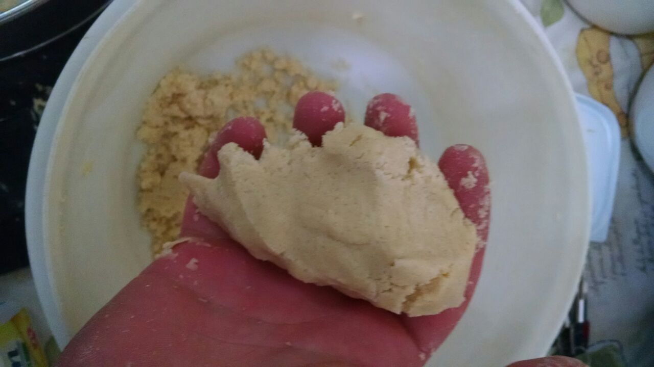 Misturar todos os ingredientes em pó, acrescentar a margarina e mexer (com as mãos mesmo) até ficar como uma farofa mais úmida. Untar a forma de aro removível. Fazer uma camada fina de massa nas bordas e fundo da forma.