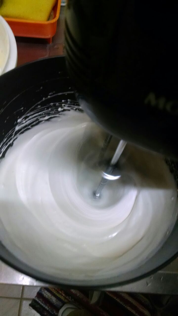 Aquecer (sem ferver senão cozinha) as claras e o açúcar.