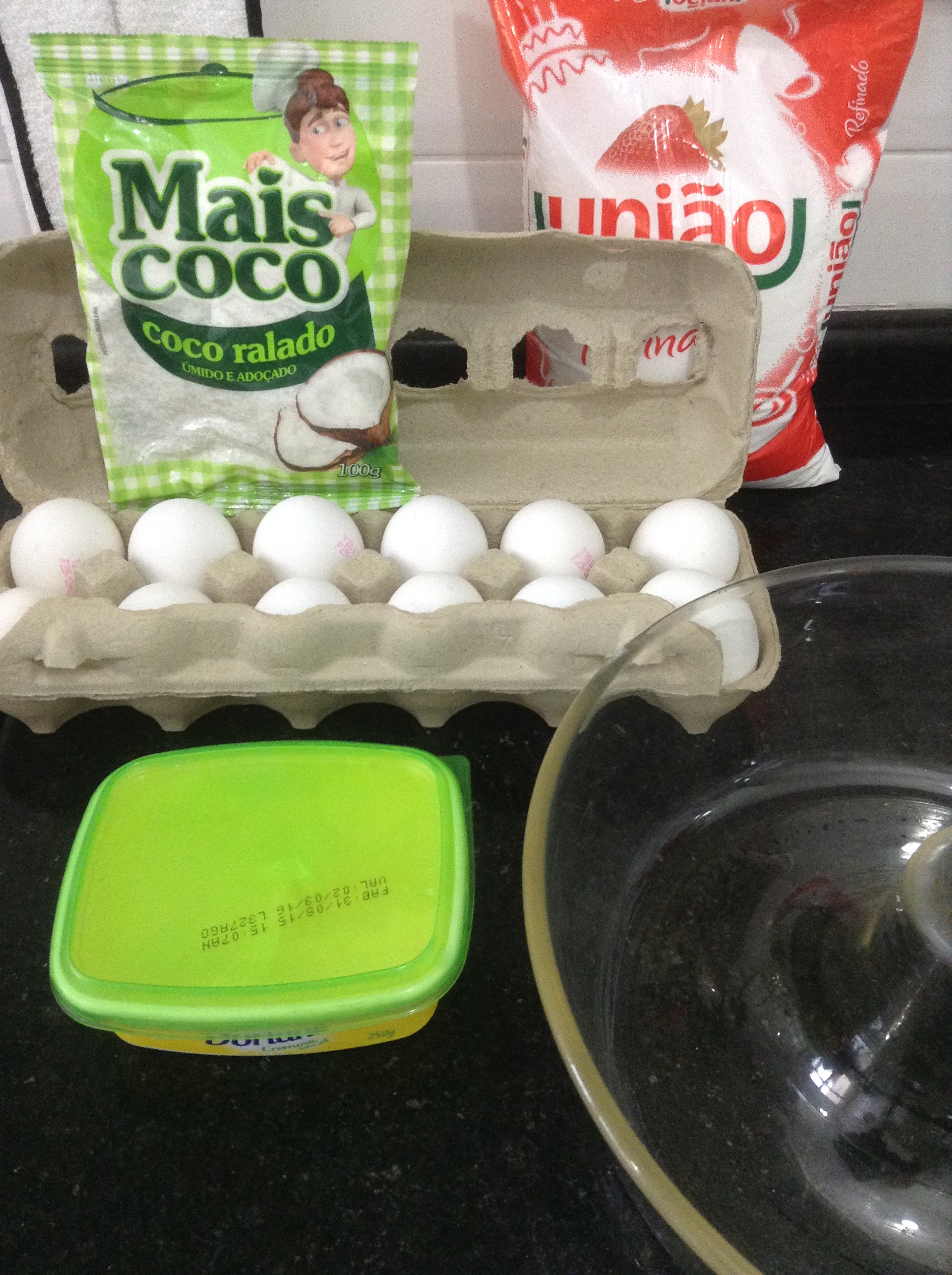 Misture bem e junte o coco. Misture e despeje na forma untada.