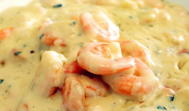 Dissolva a farinha de trigo em um pouco de água fria e junte aos camarões. Retire e coloque o creme de leite.