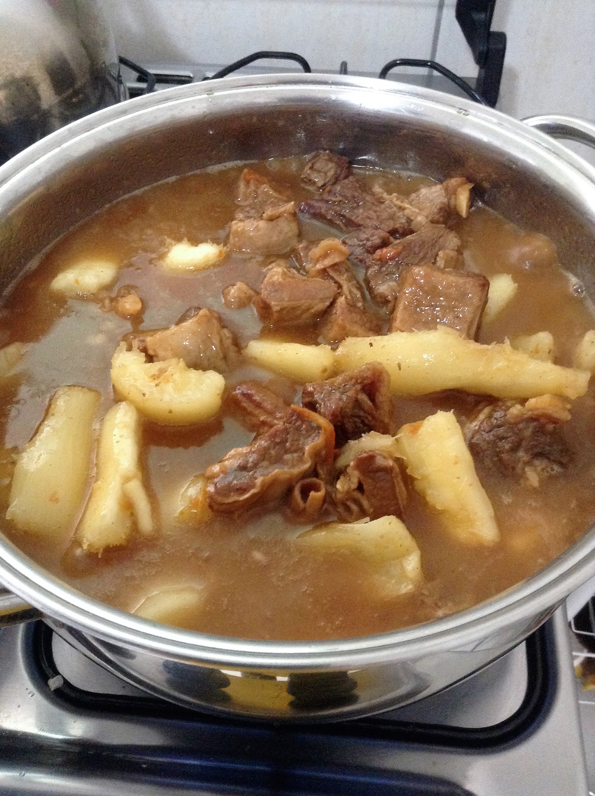A combinação da carne (costela bovina) com a mandioca e temperos, resulta em uma comida saborosa e com substância!