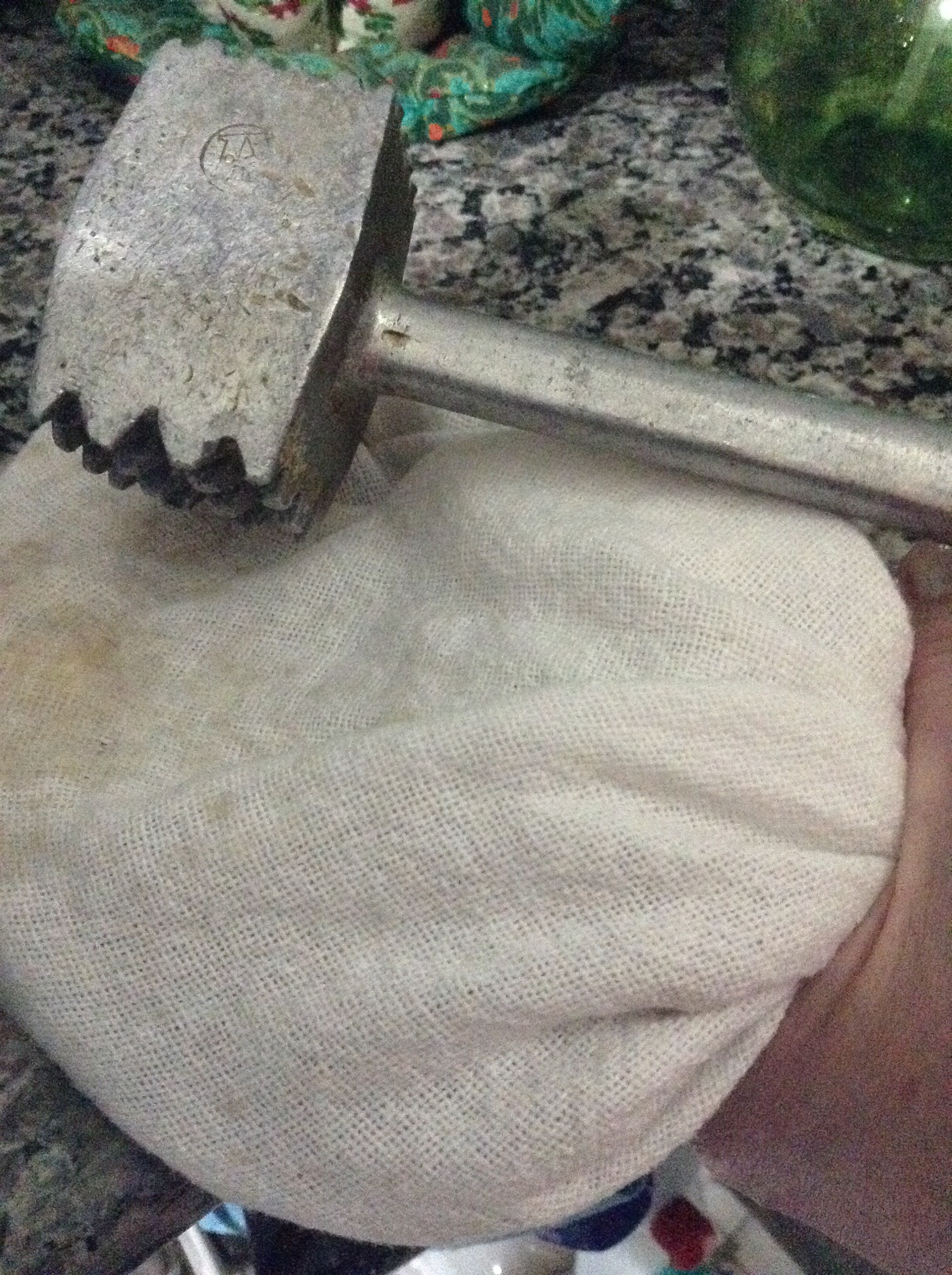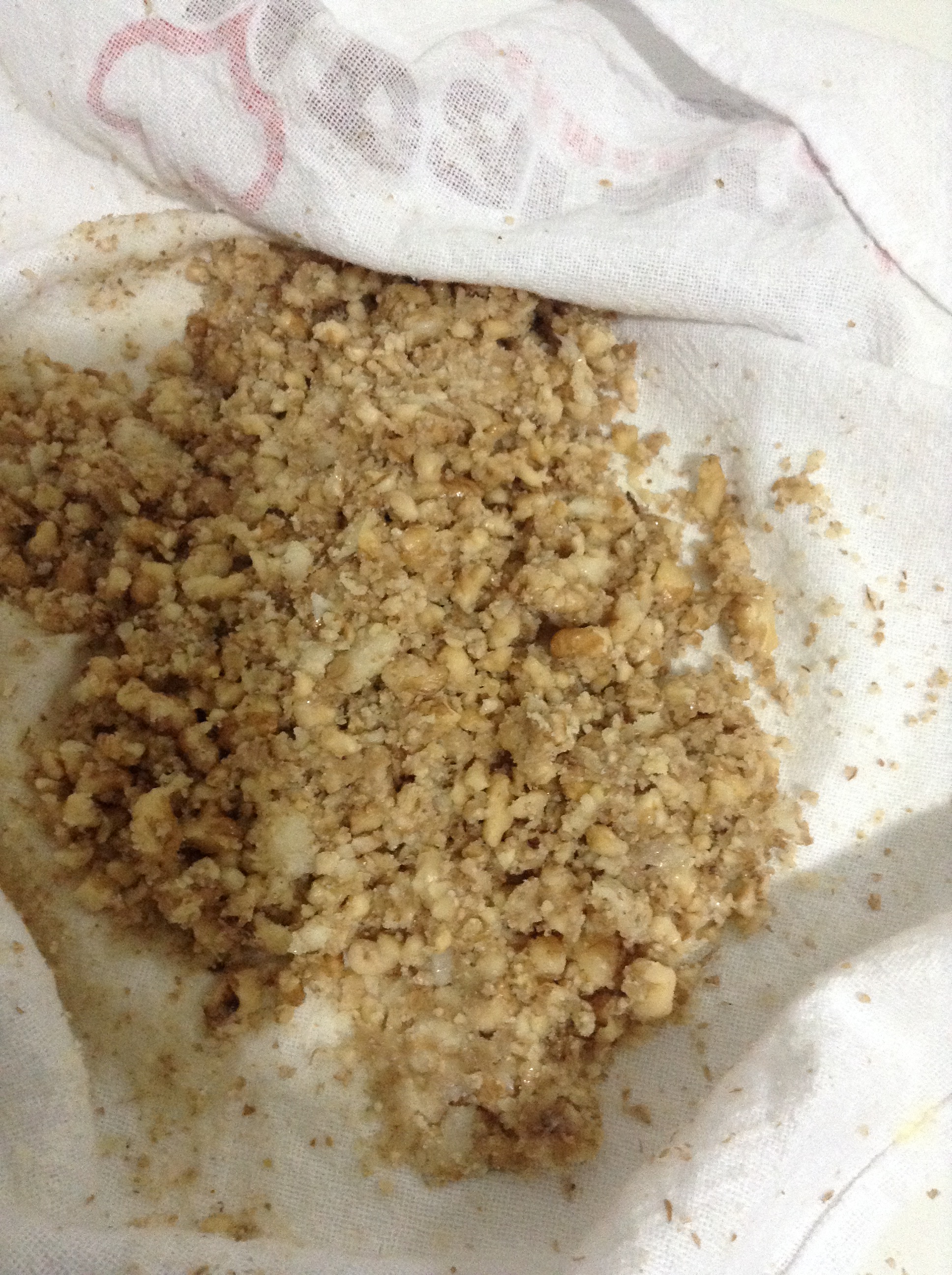 Em um pano bem limpo, coloque as nozes e o alho e bata bem com um batedor até incorporar bem.