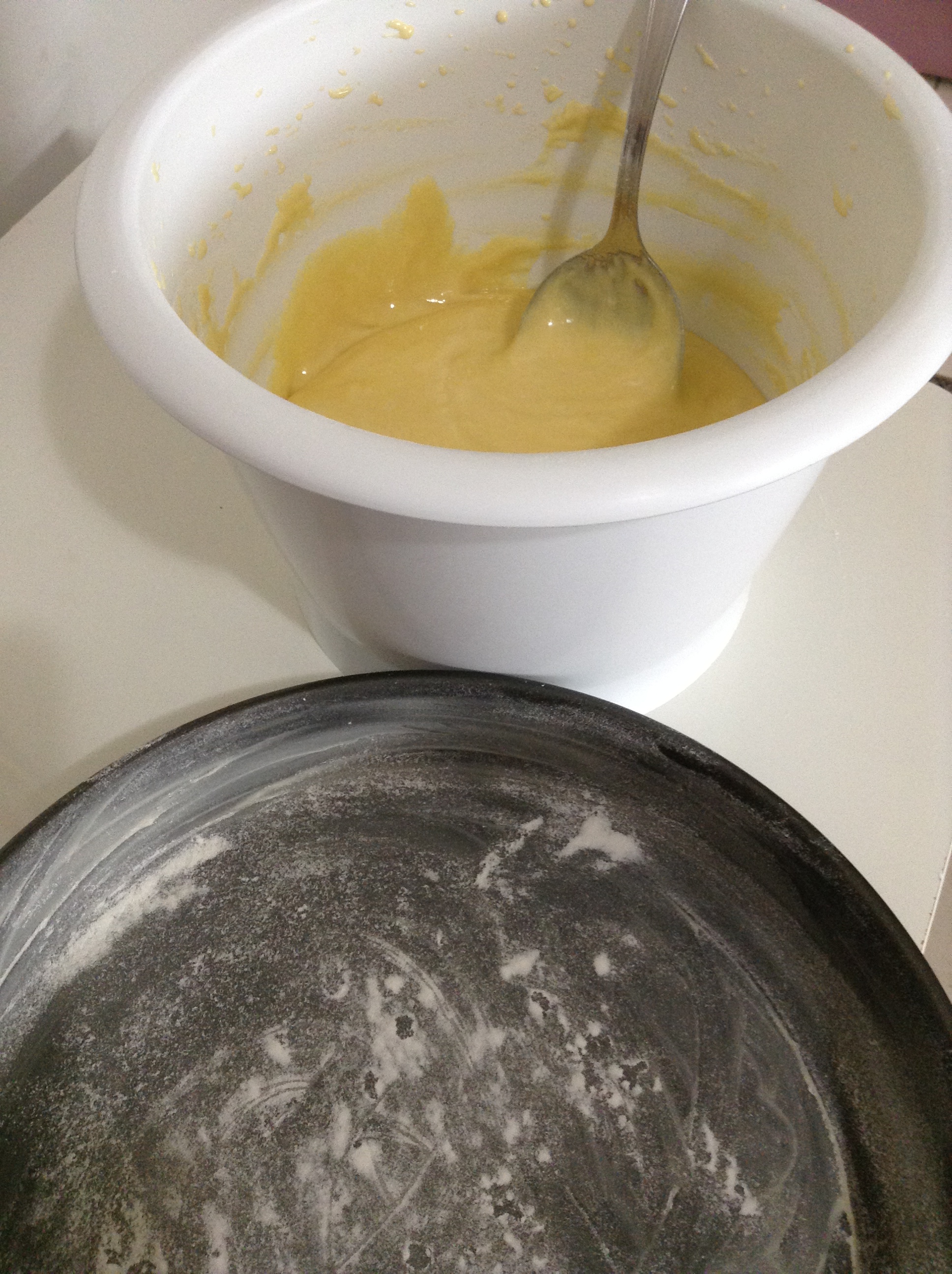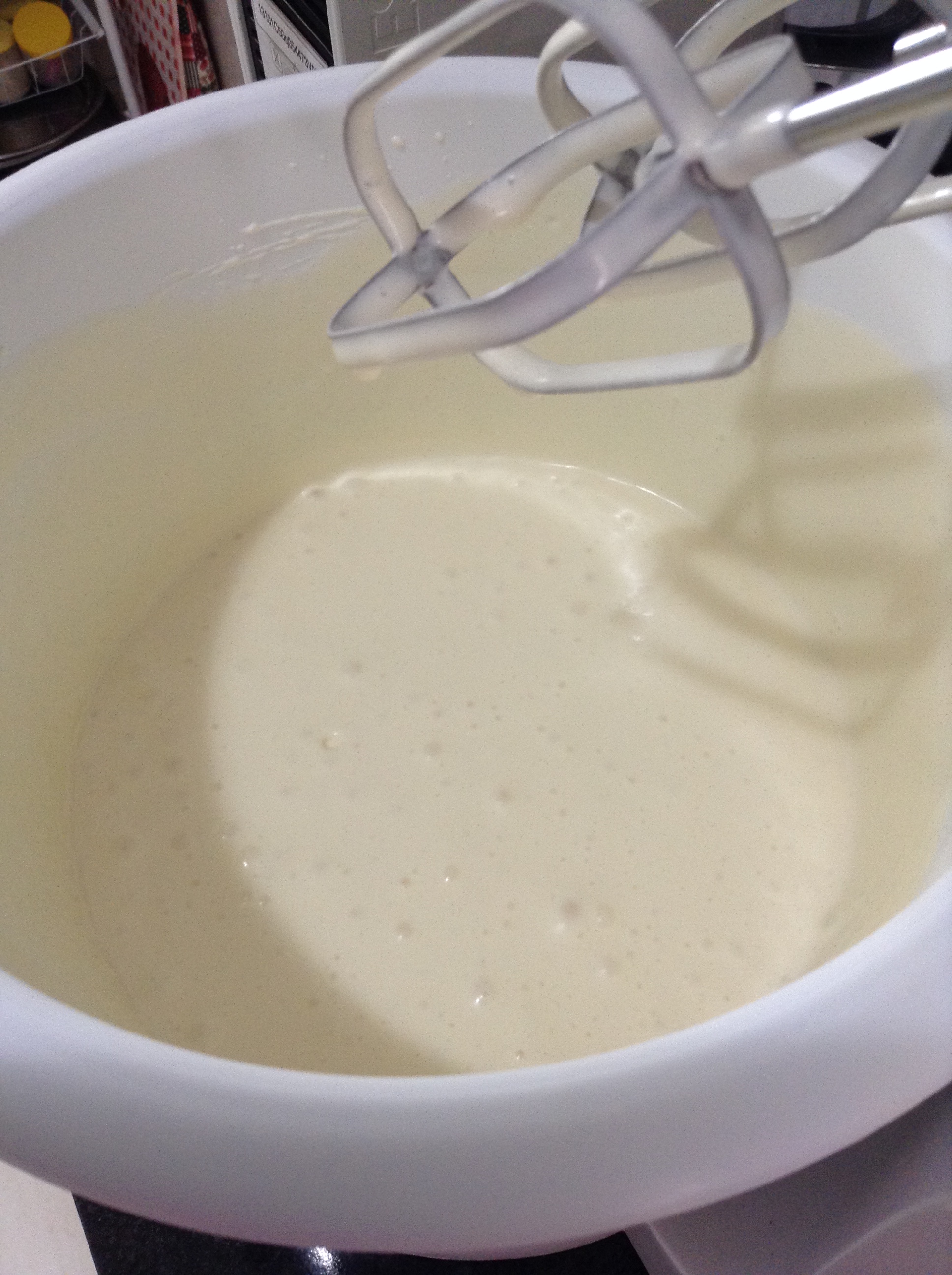Bata as claras em neve, junte o açúcar sempre batendo e depois as gemas continuando a bater até ficar uma massa cremosa.