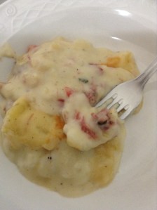 Leve ao fogo a mandioca, sal, leite e manteiga. Mexa bem! Por último acrescente o creme de leite.