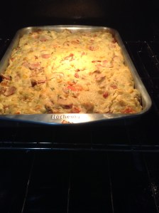 Coloque em forma untada e leve para assar em forno pré aquecido por mais ou menos 30 minutos.