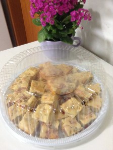 Por ser fácil de cortar em quadradinhos e não precisar aquecer, foi o que fiz para levar em um encontro.