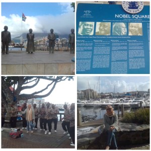 Nessas fotos acima, a primeira e segunda fotos mostram estátuas dos quatro ganhadores do prêmio Nobel com as devidas explicações: Albert Luthuli, Desmond Tutu, Fw de Klerk e o mais famoso, NelsonMandela.