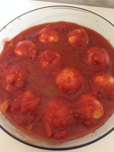 Junte o tomate pelado e tempere com o sal e pimenta do reino.