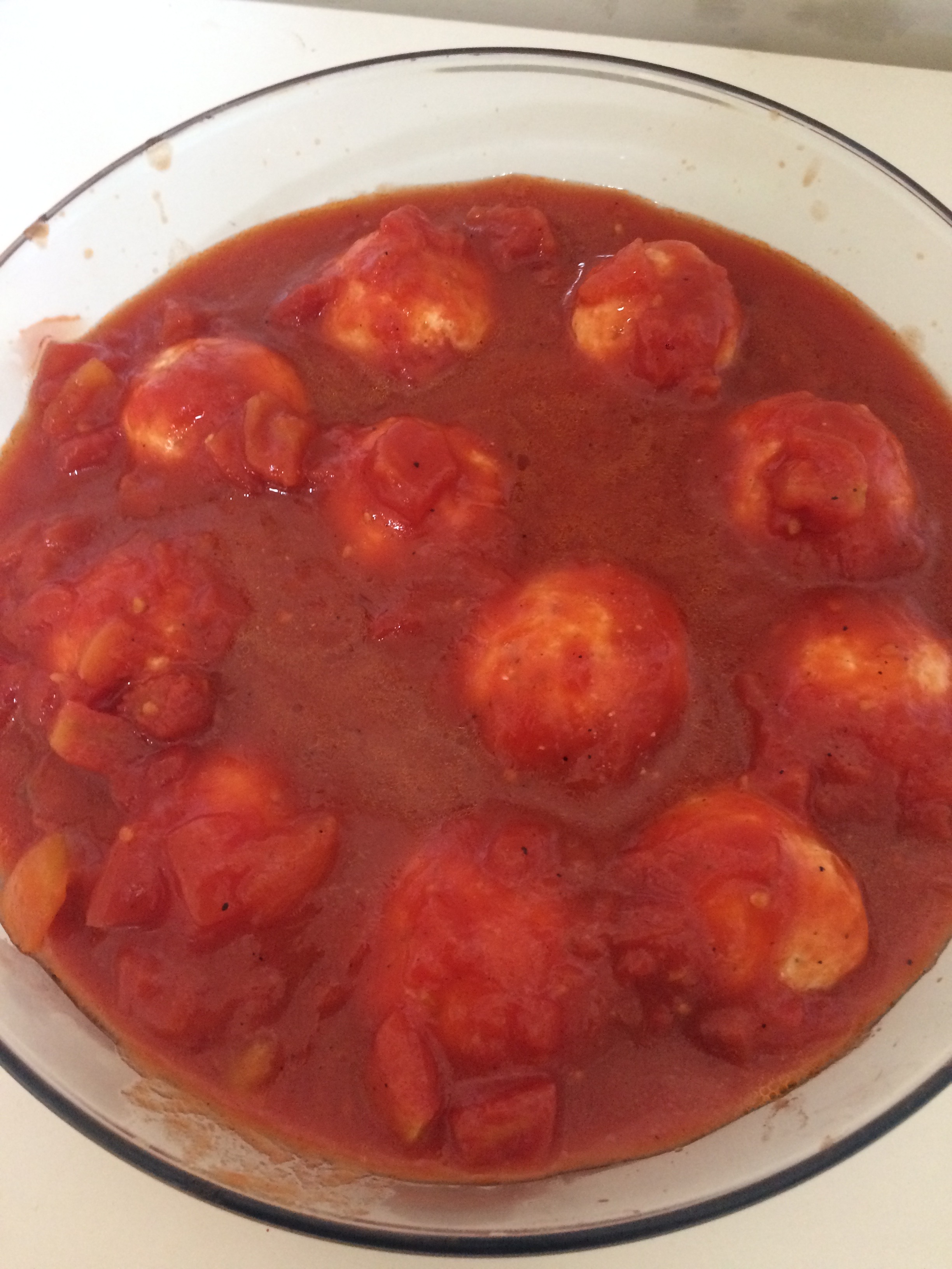 Junte o tomate pelado e tempere com o sal e pimenta do reino.