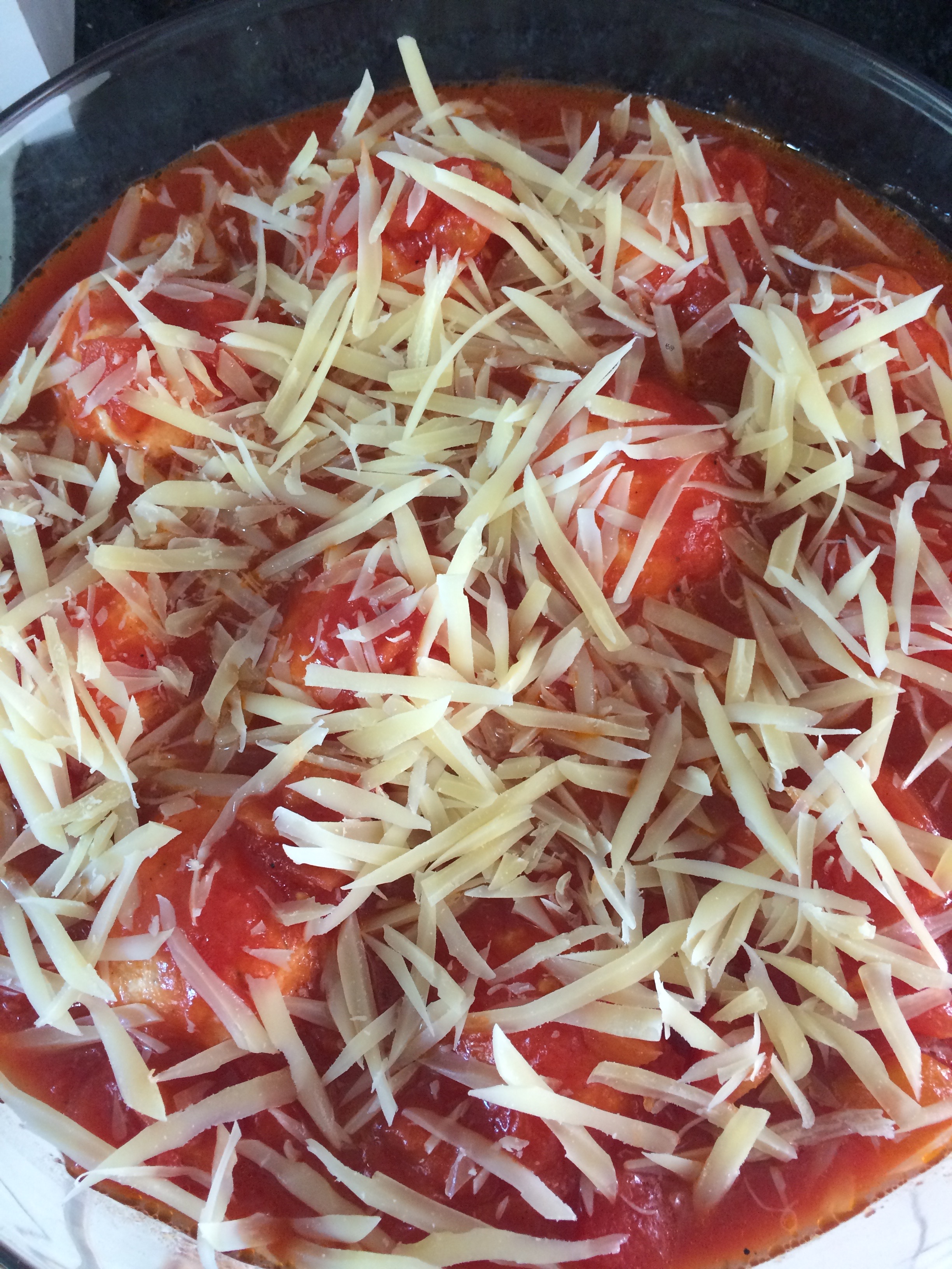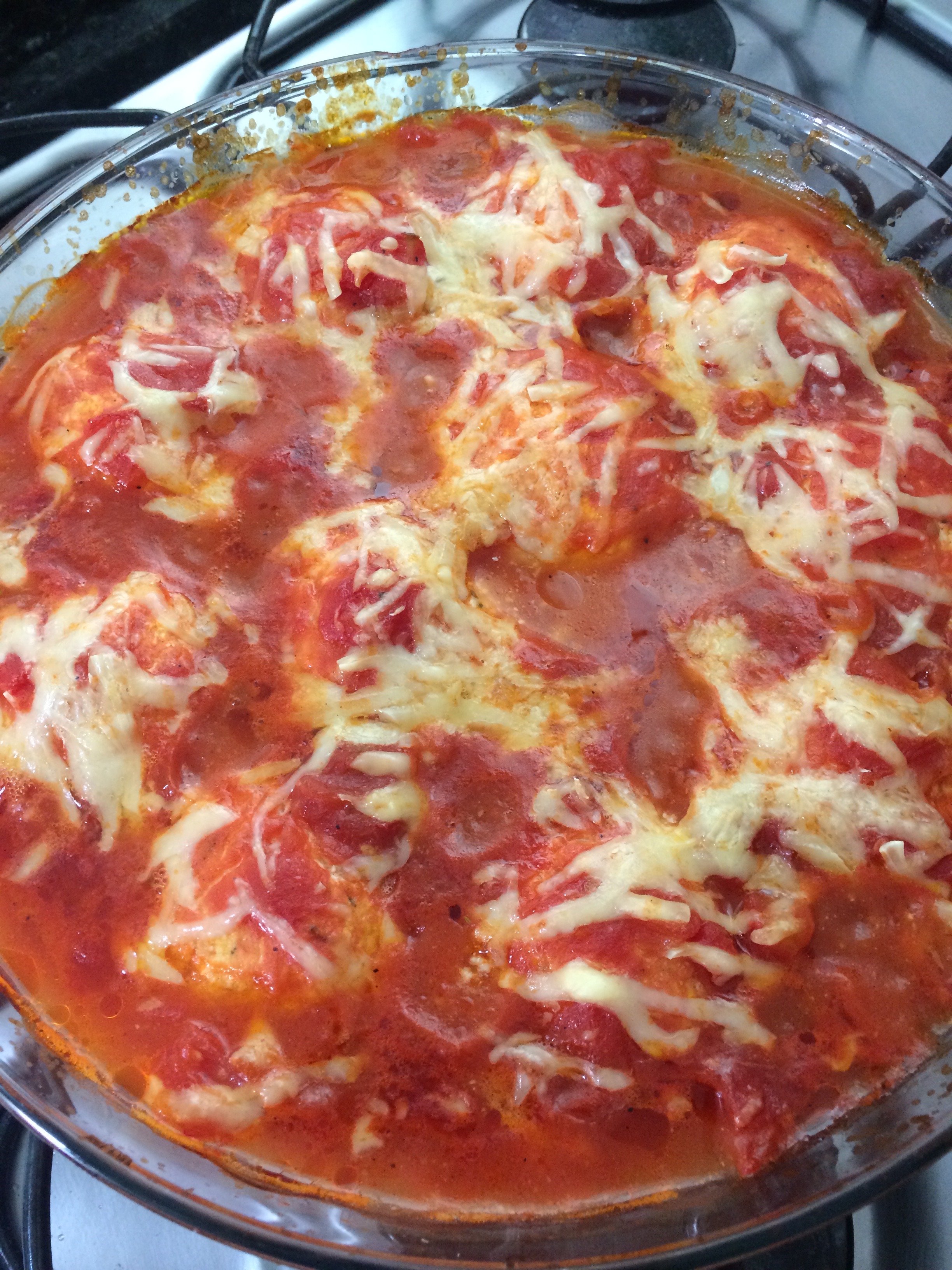 Cubra com a outra metade do molho (retire a cebola e o manjericão).