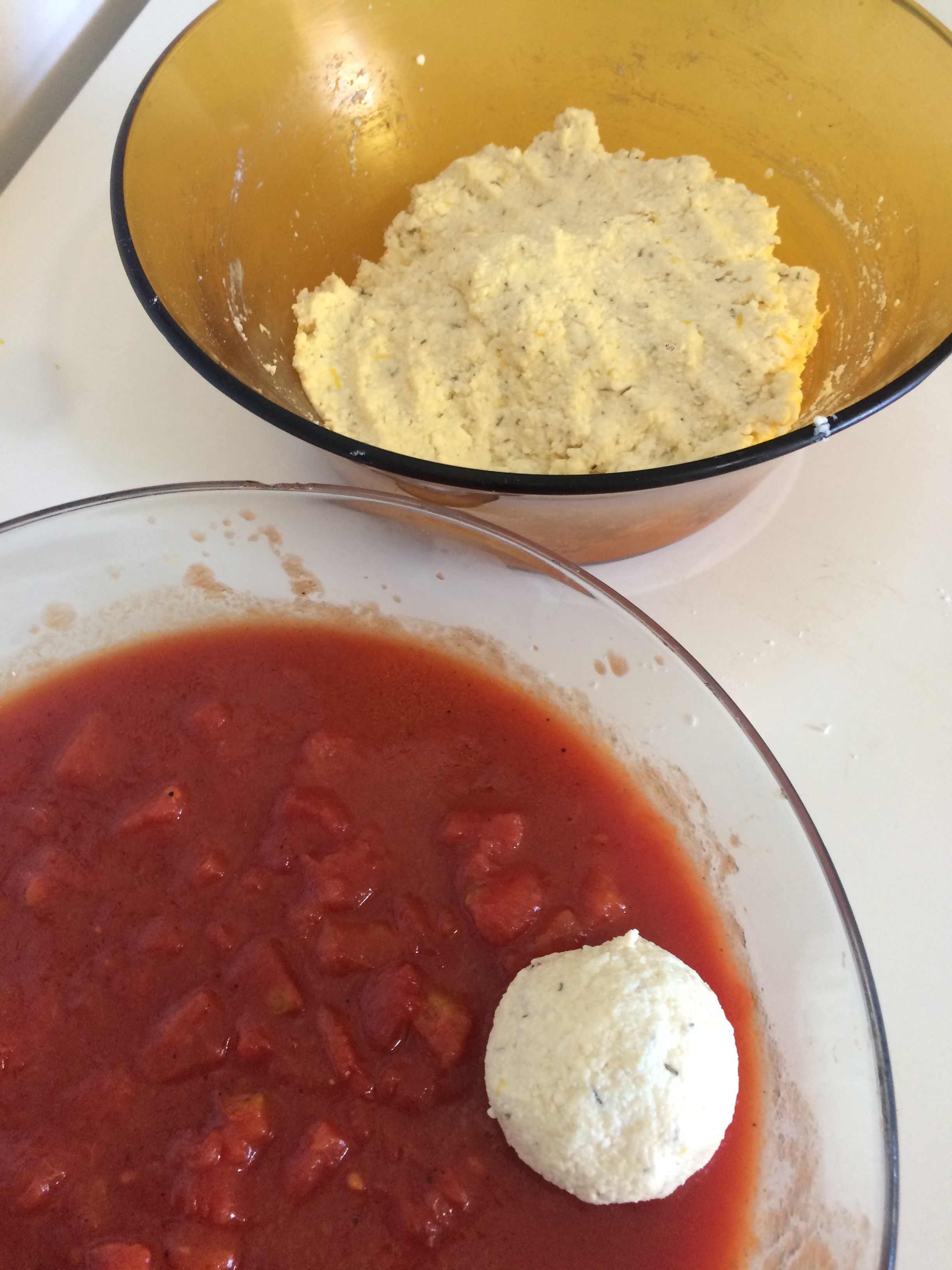 Vá colocando a farinha de pouquinho em pouquinho até dar ponto de fazer uma bola (do tamanho de um ovo) e essa massa não grudar nas mãos.