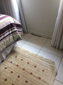 No piso bem branquinho, aquela coisa horrorosa se arrastando e entrando pelo corredor em direção aos quartos.