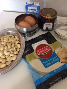 Coloque as amêndoas descascadas no liquidificador com o açúcar, gema e creme de leite. Bata rapidamente para fazer uma massa grossa.