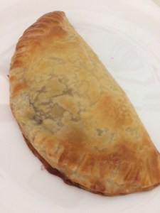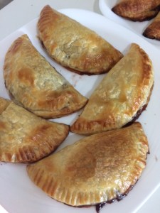 Tentei dar um formato de croissant nela, mas como não consegui; fiz como um pastel … o gosto é o mesmo!