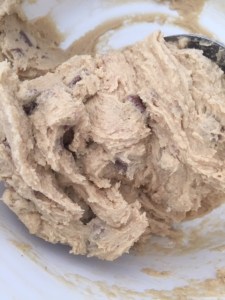 Forre uma forma com papel manteiga (eu untei com manteiga) e com a ajuda de duas colheres pequenas, faça bolinhas irregulares (quando assar ela vai esparramar) e coloque distante uns 3 dedos uma das outras.