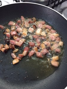 Primeiro frite o bacon.
