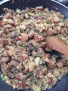 Eu gosto mais da farofinha úmida, mas faça como achar melhor.