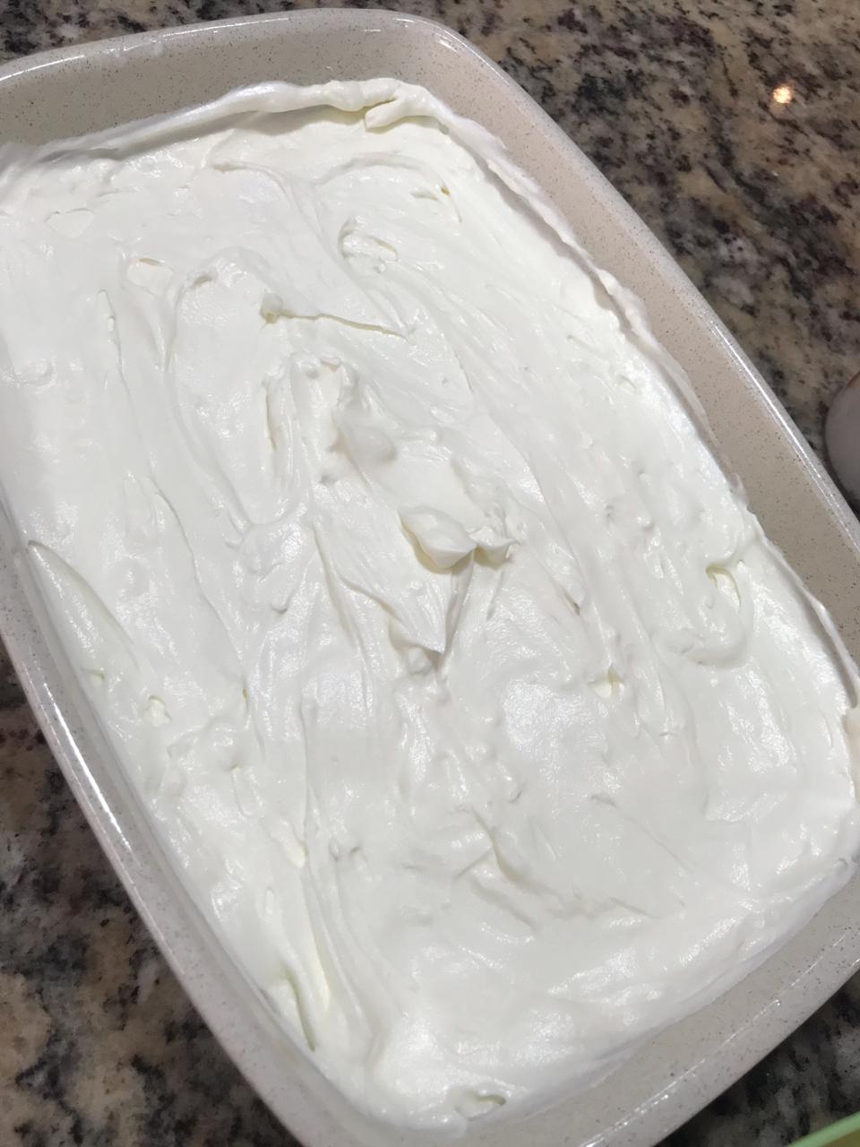 Em uma tigela misture o cream cheese com o creme de leite gelado e sem o soro.