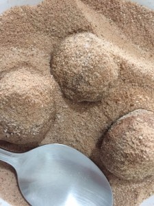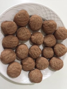 Enquanto as bolachinhas assam (e que perfume maravilhoso elas desprendem), faça em uma vasilha uma mistura de açúcar e canela.
