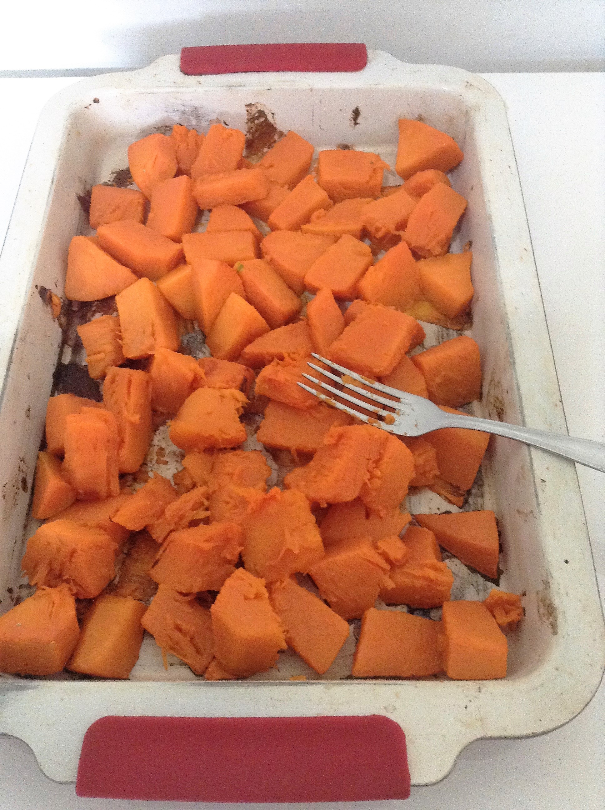 Coloque a abóbora em uma forma e leve ao forno médio até ficar macia.