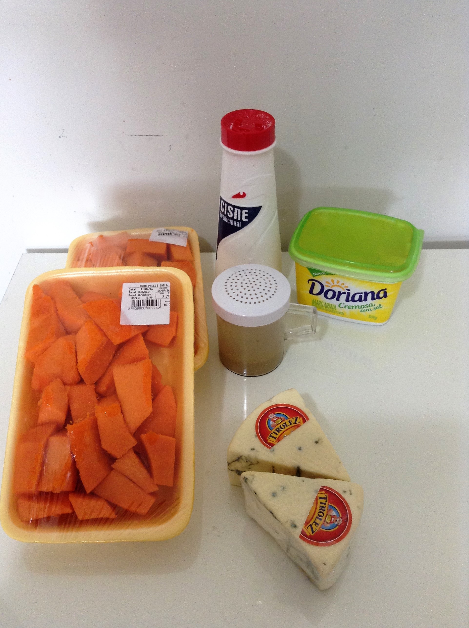 Bem, aí eu tinha uma abóbora cabotiá e resolvi fazer para ter um aperitivo completo.