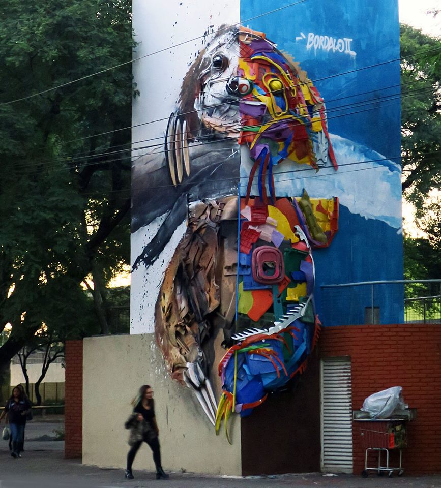 Artur Bordalo, 31 anos, nascido em Lisboa, é o responsável por isso. As duas maiores cidades brasileiras foram presenteadas com suas obras – o bicho preguiça e o lobo guará mostram não apenas o talento desse artista, mas principalmente faz uma crítica ao mundo em que vivemos, onde o desperdício é comum e coisas perdem seu valor ou utilidade rapidamente.