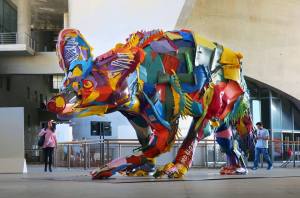 Bordalo II consegue, com suas esculturas, criar arte a partir do desperdício.