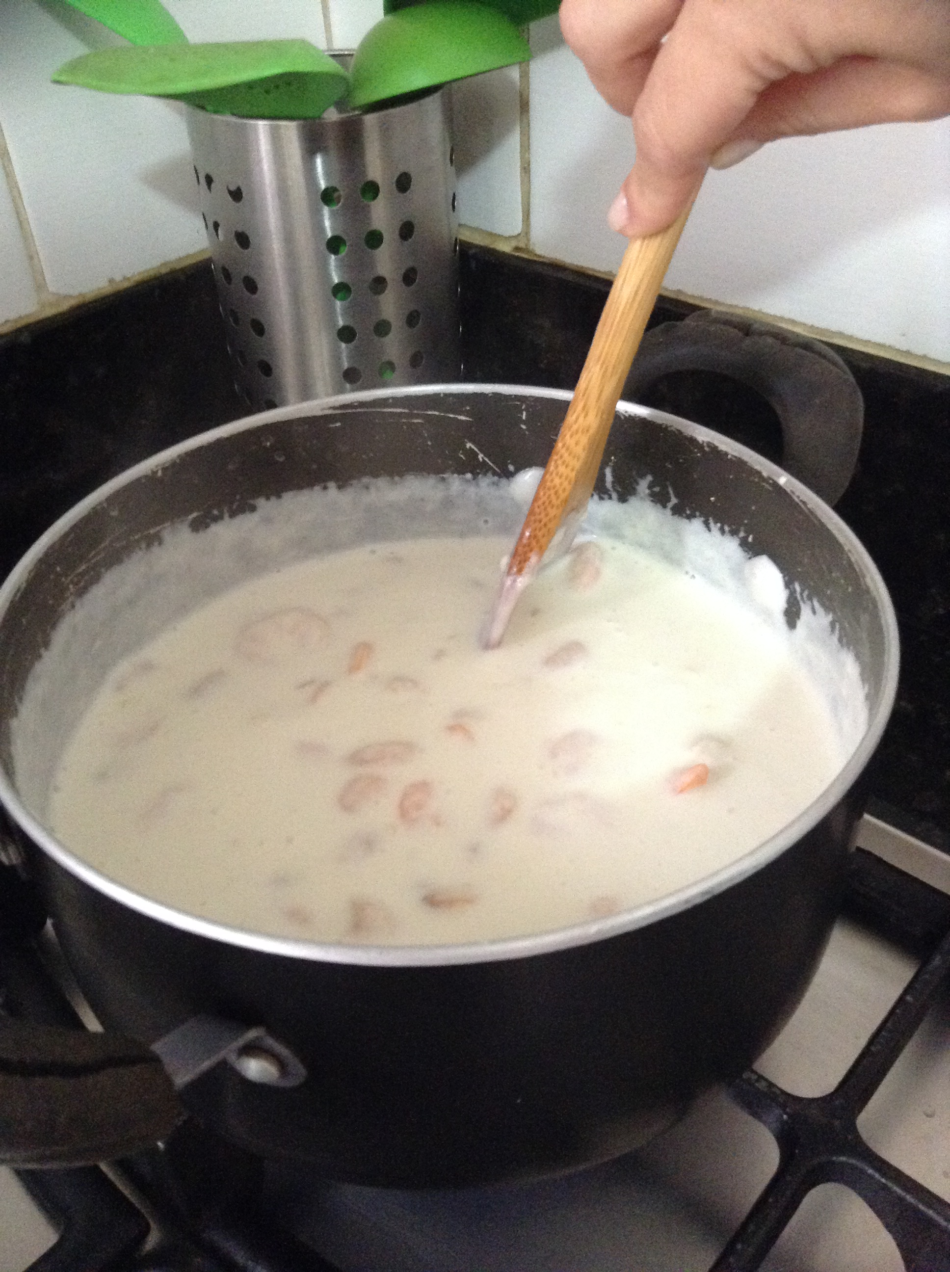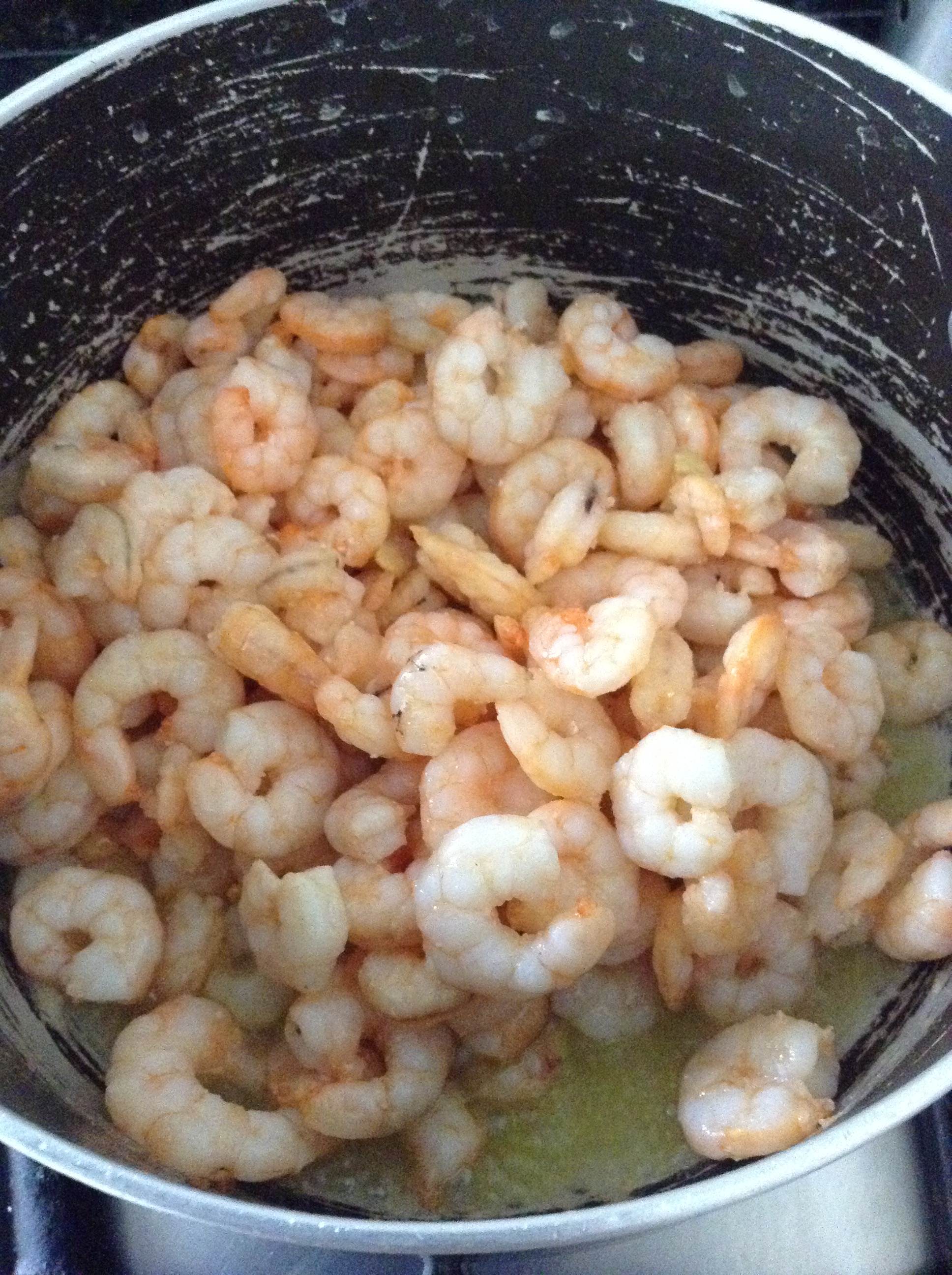 Primeiro fiz um arroz do tipo que eu gosto, com azeite e alho.