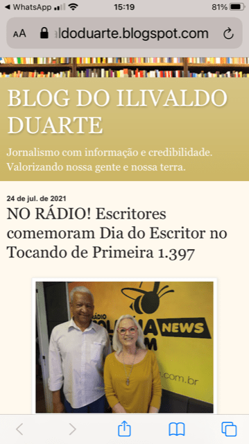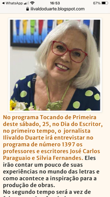 E foi assim que recebi o convite para ir até a Rádio Colmeia FM de Campo Mourão, participardesse programa de número 1397, TOCANDO DE PRIMEIRA, do meu amigo e confrade ILIVALDO DUARTE.