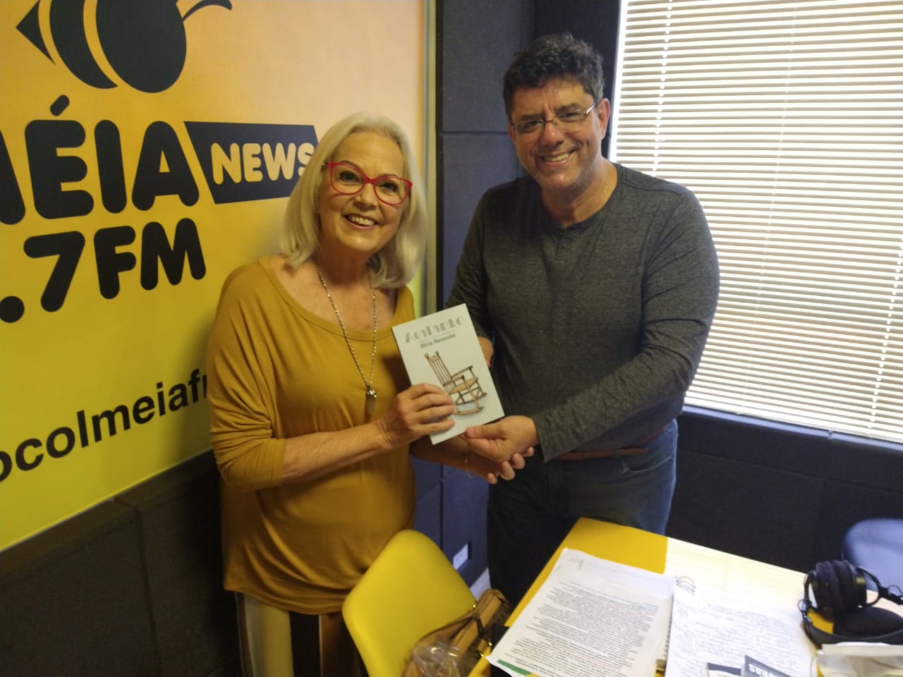 E assim as perguntas foram em torno de como começamos a escrever, se é mais fácil serprofessor ou escritor as quais respondíamos, enquanto ouvintes mandavam suas mensagens pelowhatsApp.