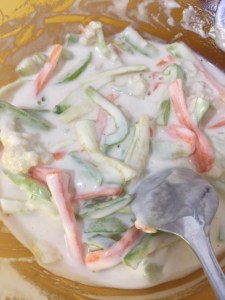Para essa receita, primeiro cozinhe as flores em água e sal e coloque em um pirex untado com bastante manteiga.