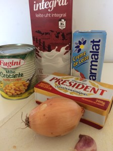 No liquidificador, coloque o leite condensado e o creme de leite e bata bem.