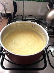 Junte a gelatina incolor dissolvida e bata só o tanto de misturar.