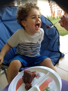 E nós esperamos ansiosos por nossa “comida” até que ela vem com uma bandeja com pratinhos, copos, xícaras e talheres (de brinquedinho) e nós experimentamos, fingimos comer e comentamos como tudo está gostoso.