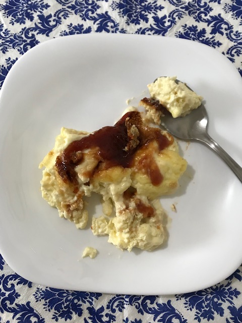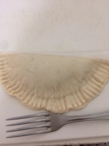 Tentei dar um formato de croissant nela, mas como não consegui; fiz como um pastel … o gosto é o mesmo!