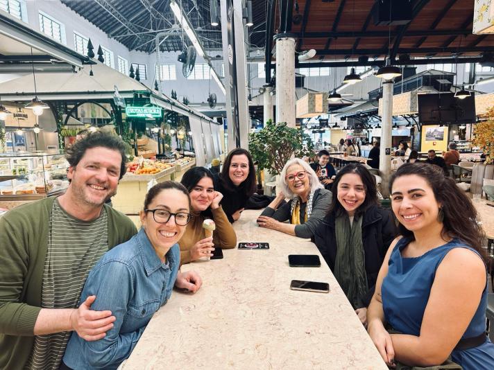 E aqui estão, da esquerda para a direita: o casal chefe, Bruno e Rachel,Clara, Fabi, eu, Letícia e Giulie. Adorei conhecê-los!