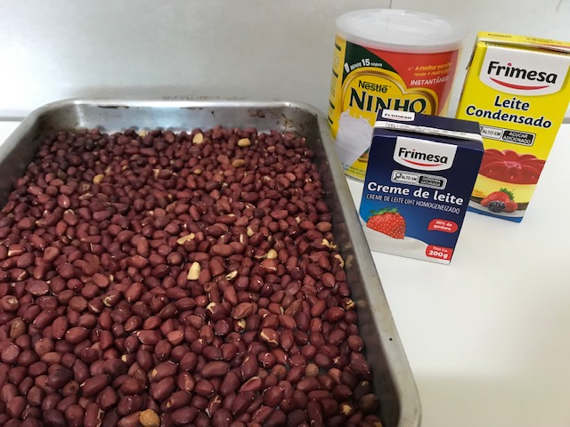O bom dessa receita é que usamos o amendoim sem torrar e sem tirar a pele; ele vai torrando a medida que for sendo feito.