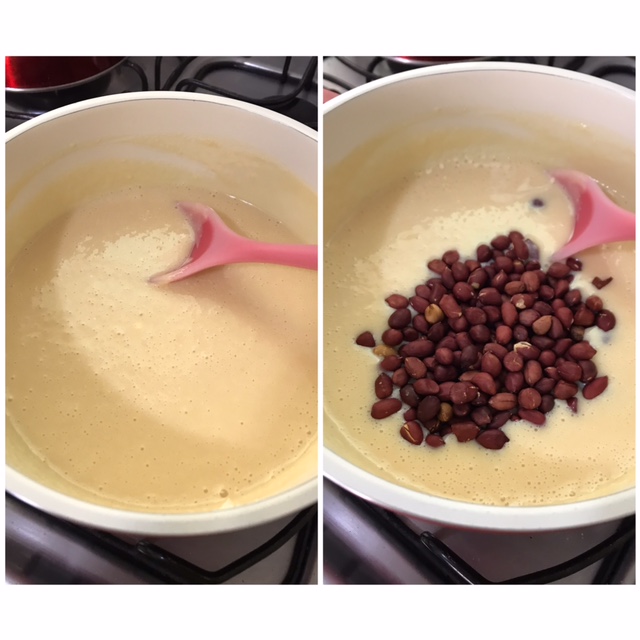 Em uma panela, coloque todos os ingredientes, mexa até começar a ferver e então junte o amendoim.