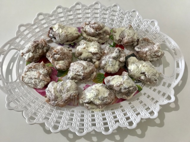 Em uma forma, polvilhe leite em pó; depois com ajuda de duas colheres, vá colocando os docinhos e polvilhe mais leite em pó por cima.