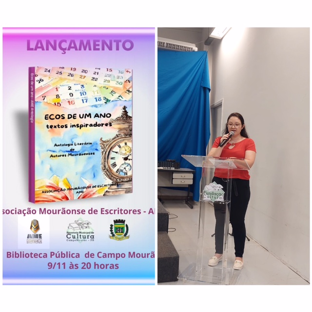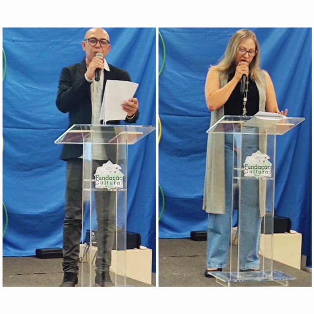 Entrega do primeiro livro para a Biblioteca Municipal e eu lendo um poema do mesmo livro.