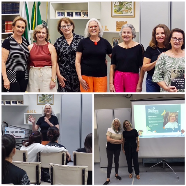 Abaixo: mini curso sobre a importância da literatura e da leitura no desenvolvimento infantil, com Dalva Helena de Medeiros; tarde literária das escritoras da AME, com Maria Umbelina, Cleire e Giselta.