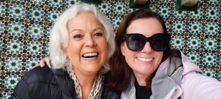 Aproveitei para tirar uma foto com nossa anfitriã (as duas de cabelos brancos e óculos vermelhos) que passa meio ano em Curitiba e meio ano na Inglaterra.
