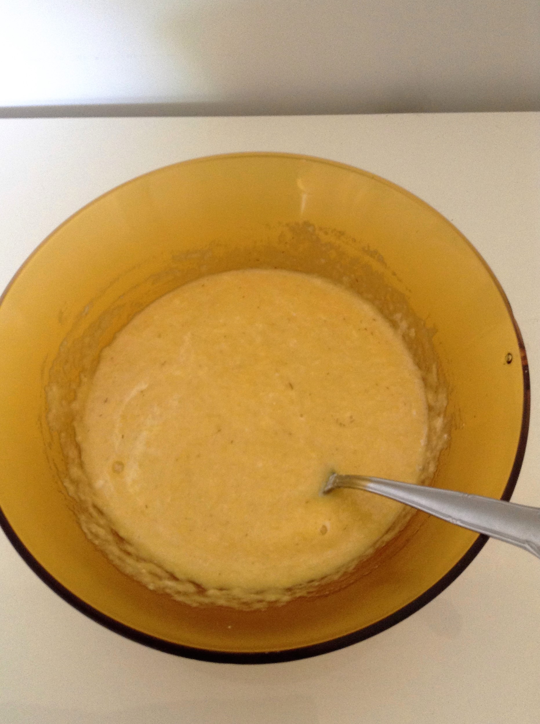 Pois é… com ele faremos a massa do bolo que NÃO leva farinha de trigo e SIM fubá.