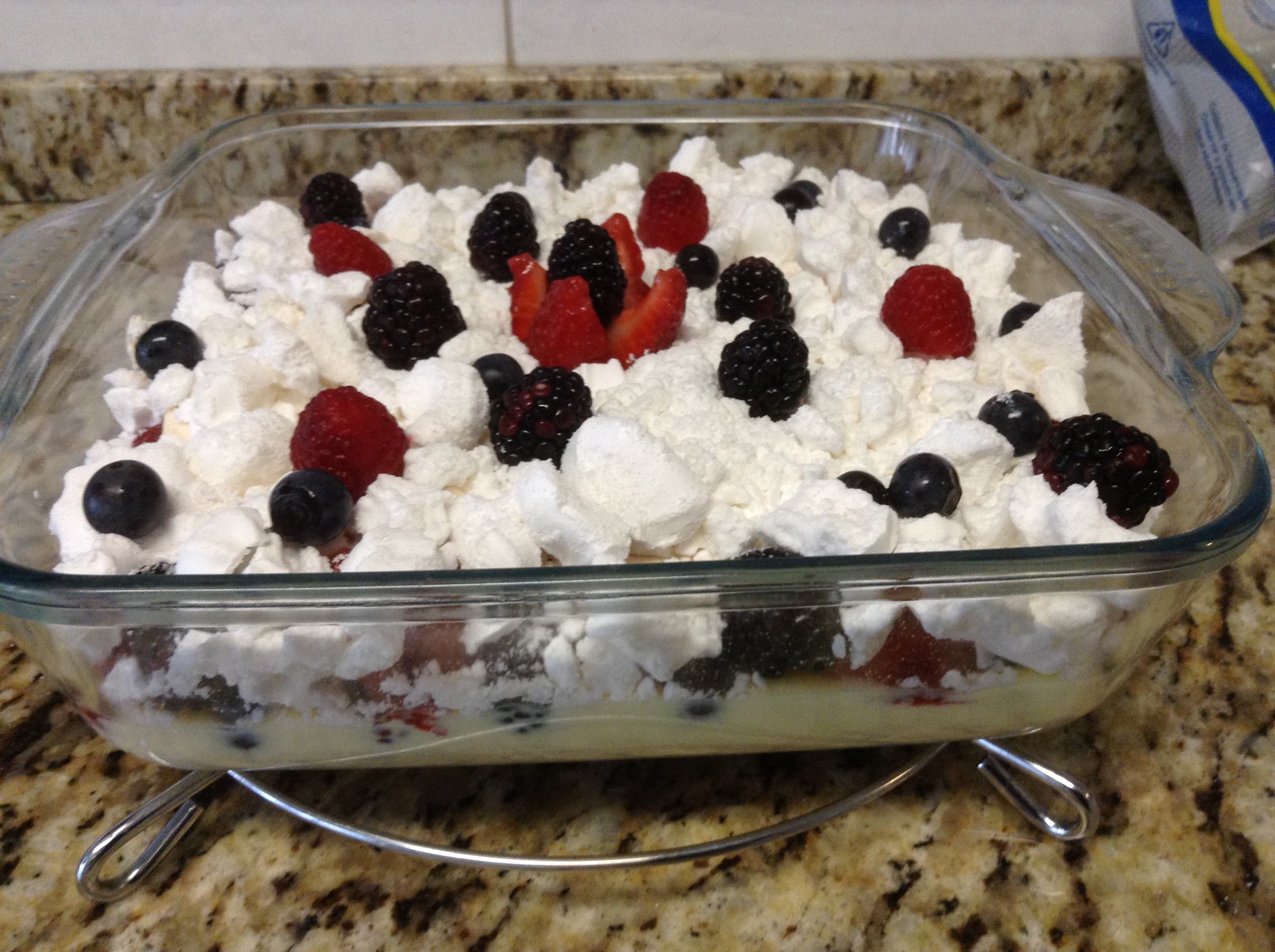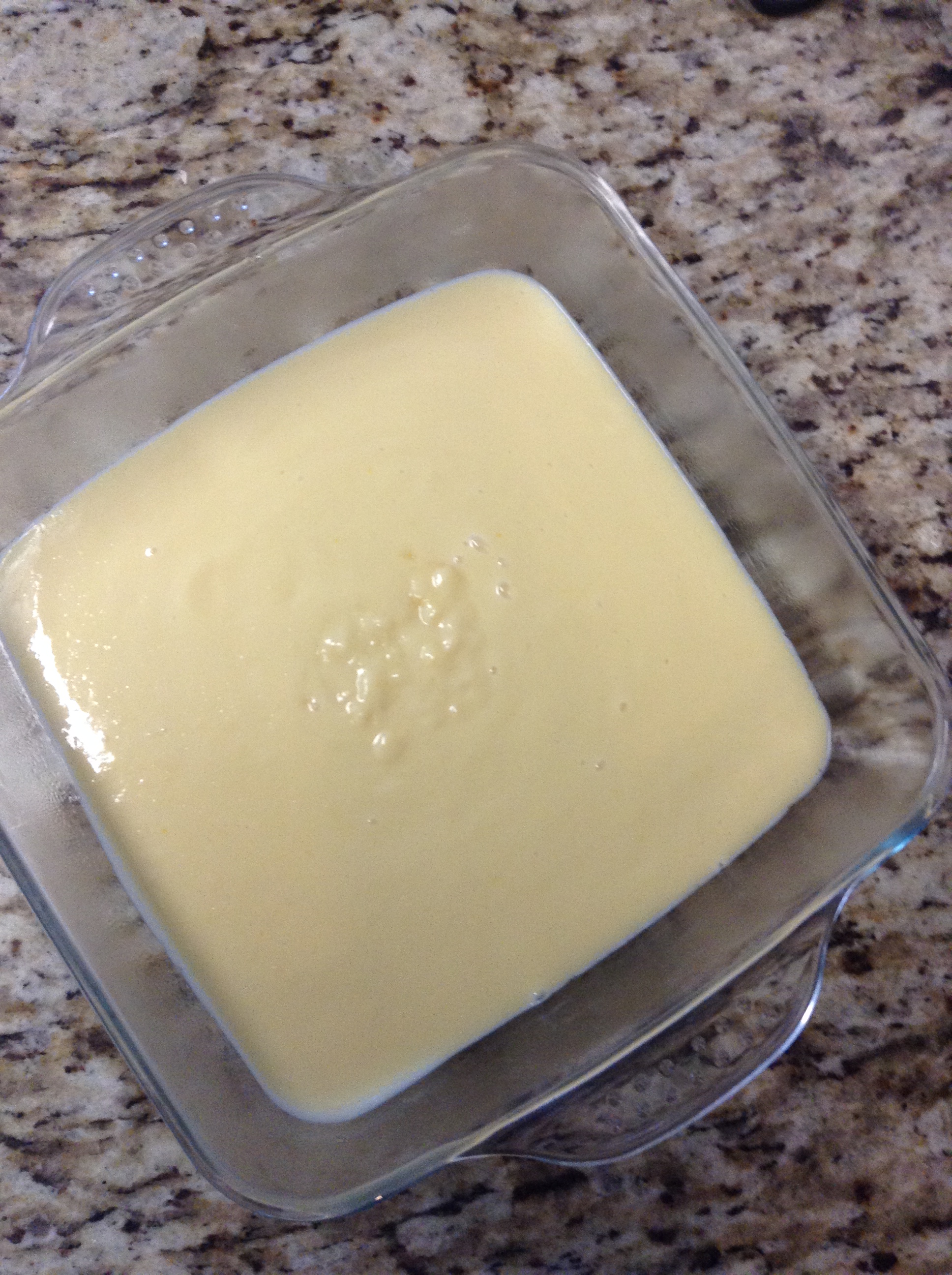 Passe rapidamente os biscoitos na calda do pêssego e vá acomodando em um pirex.