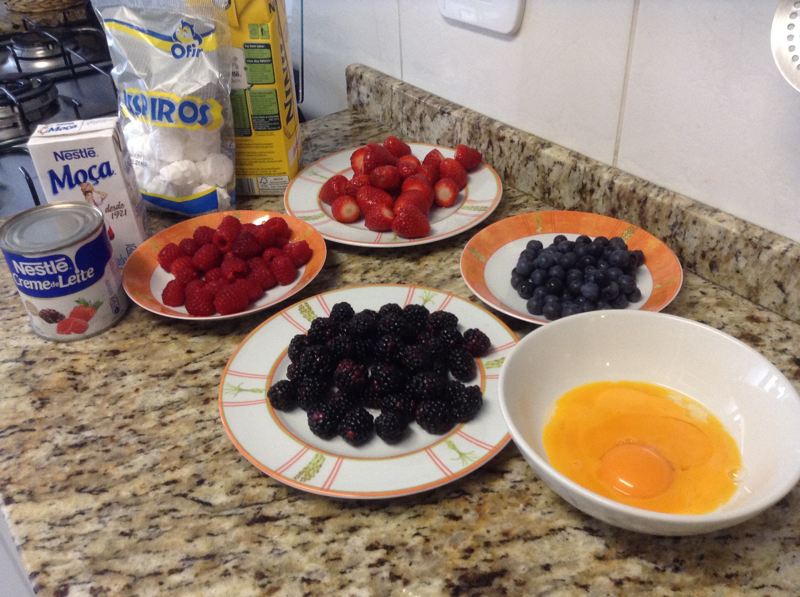Em uma panela misture o leite condensado, o leite, as gemas e a maisena dissolvida em um pouquinho de leite. Leve ao fogo e mexa até engrossar.