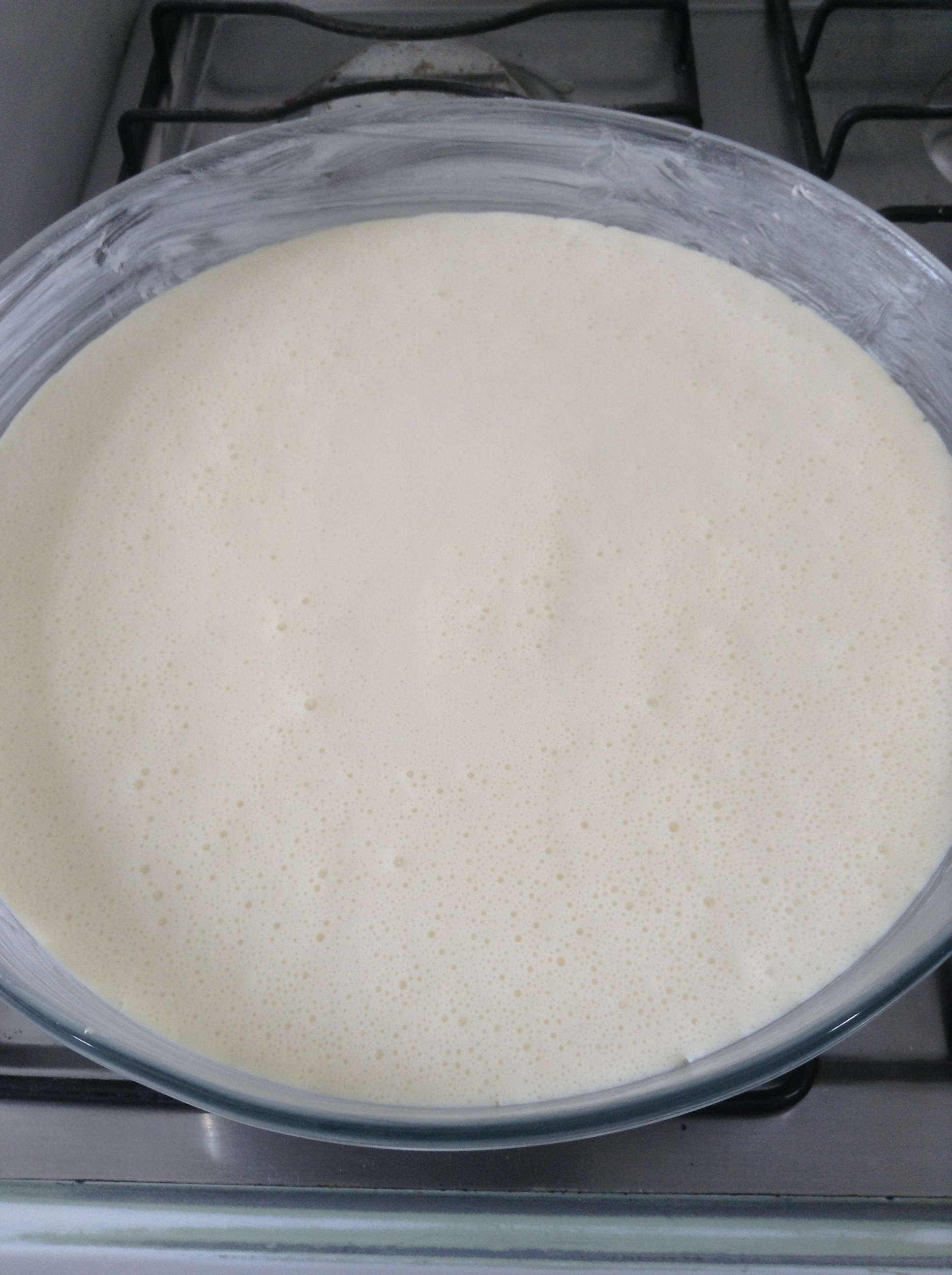Com uma concha ou mesmo com o bico do liquidificador, derrame a massa por toda a superfície da frigideira.