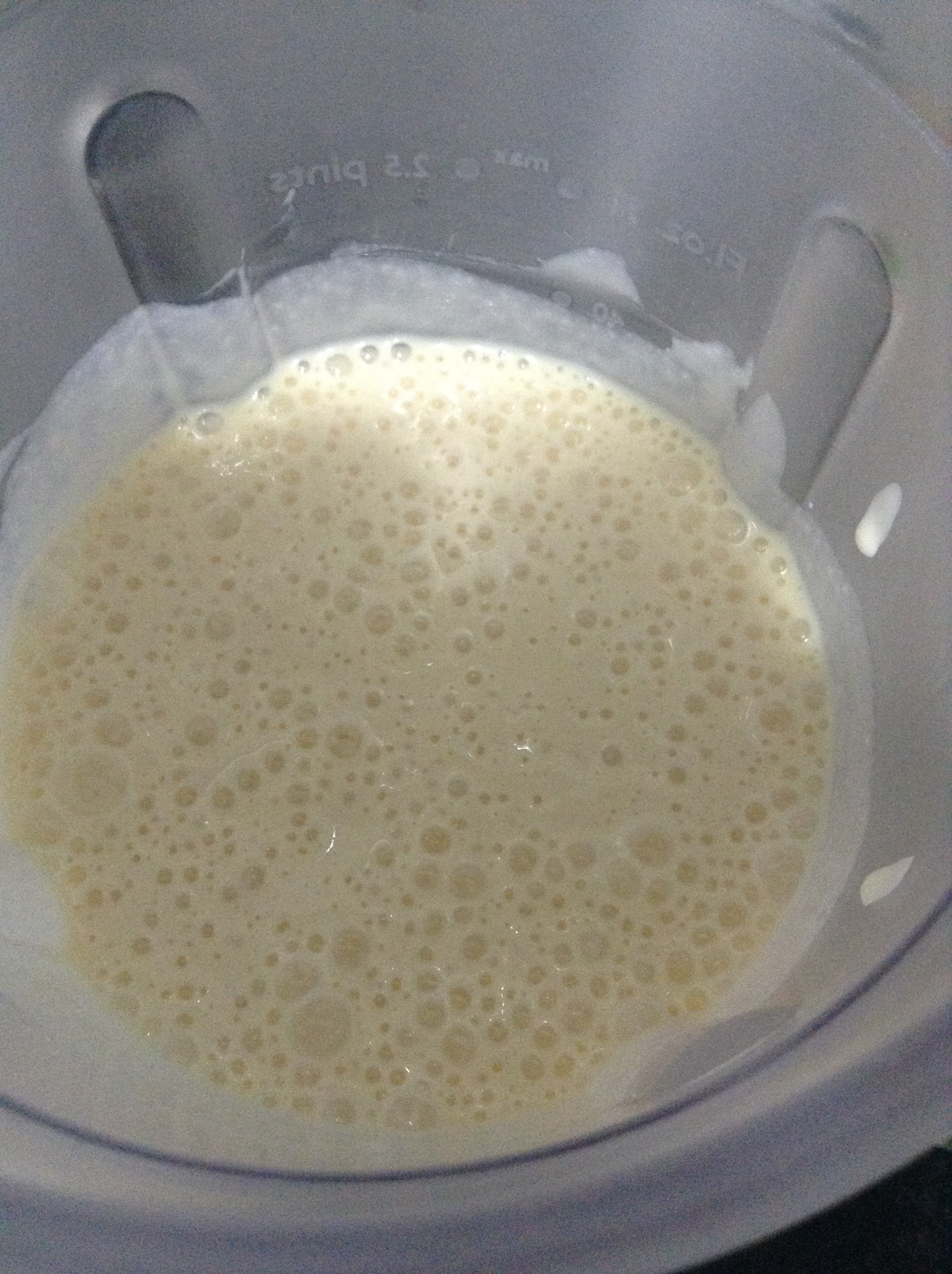 Junte a metade da farinha e metade do leite para bater bem e depois coloque o outro tanto e bata até ficar uma massinha lisa e fina.
