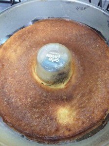 É tudo muito rápido, aí pegue uma escumadeira e vire a panqueca para o outro lado.